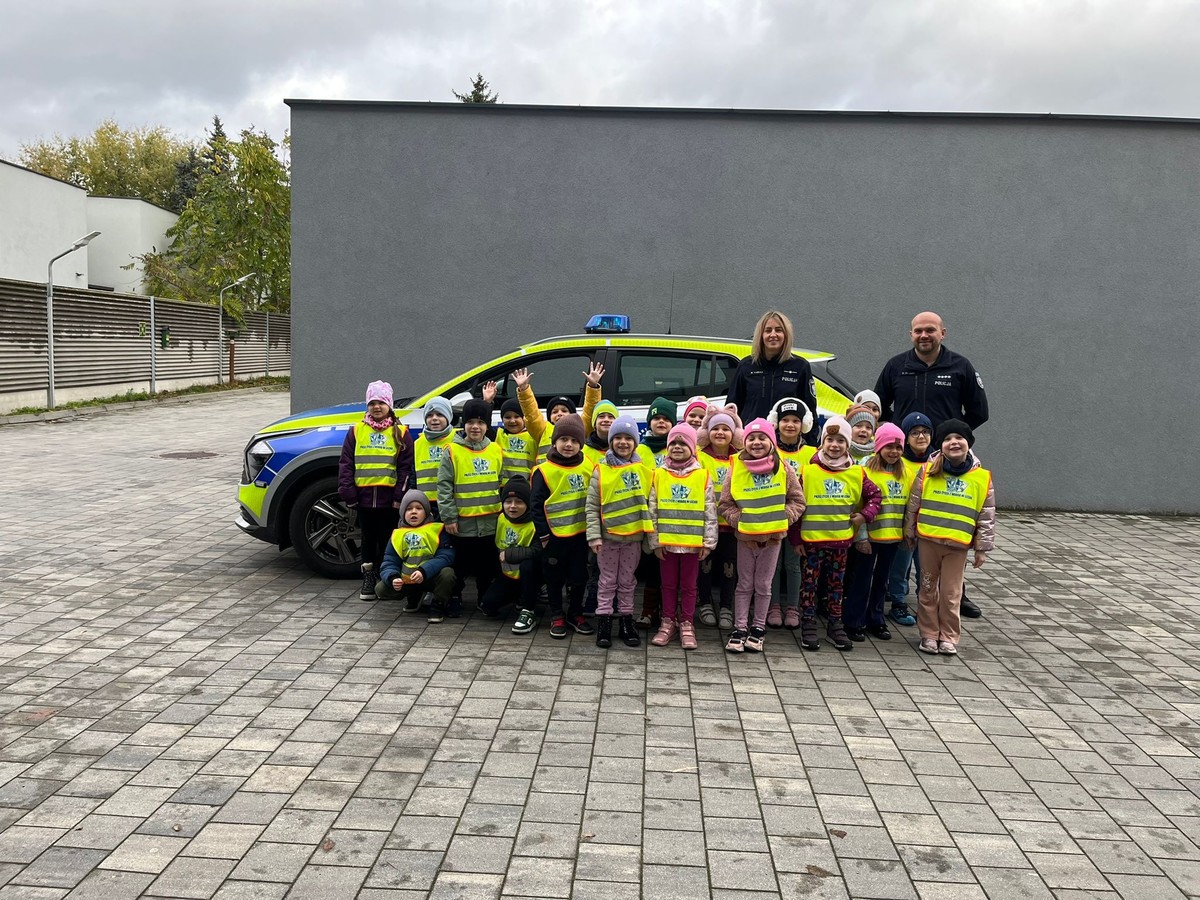 Nie zabrakło także rozmów o bezpieczeństwie. Policjanci przypomnieli dzieciom podstawowe zasady poruszania się po drogach, zwłaszcza teraz – w okresie jesiennym, kiedy szybciej zapada zmrok. Funkcjonariusze podkreślili, jak ważne jest noszenie odblasków, które mogą uratować życie, czyniąc pieszego widocznym z daleka. Przypomniano również numery alarmowe oraz omówiono, w jakich sytuacjach należy z nich korzystać.