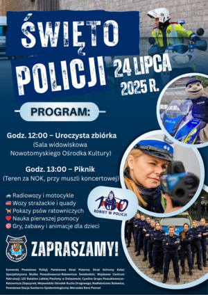 Dodano: 17.07.2025 ŚWIĘTO POLICJI 2025 W NOWYM TOMYŚLU – ZAPRASZAMY! -